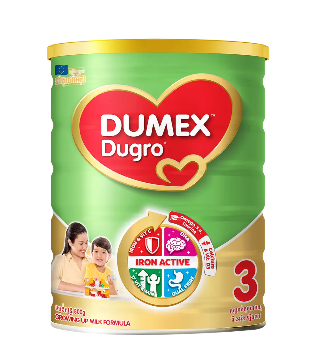 Dumex គឺជាម៉ាកផលិតផលនៃក្រុមហ៊ុនចំណាត់ថ្នាក់លេខ 1 នៅប្រទេសបារាំង*។ DUMEX Dugro ថ្មី ជាមួយរូបមន្ត IRON ACTIVE ជួយដល់ការអភិវឌ្ឍពេញលេញរបស់កូនអ្នក។