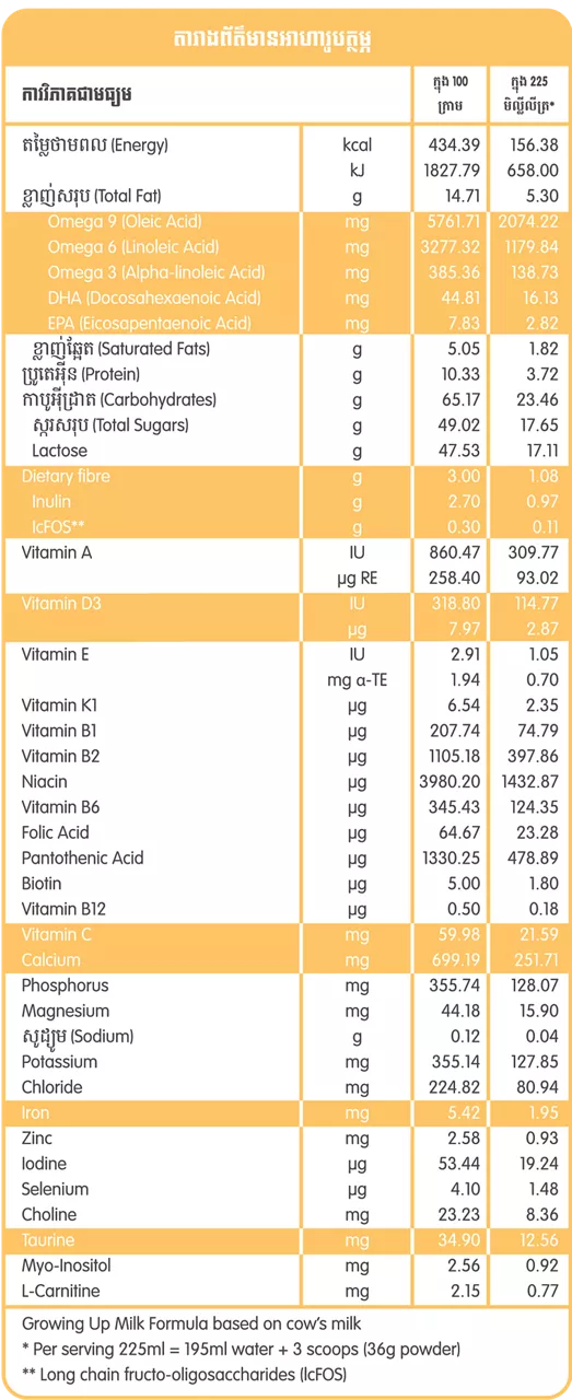 (800g) សម្រាប់កុមារចាប់ពីអាយុ 2ឆ្នាំឡើងទៅ